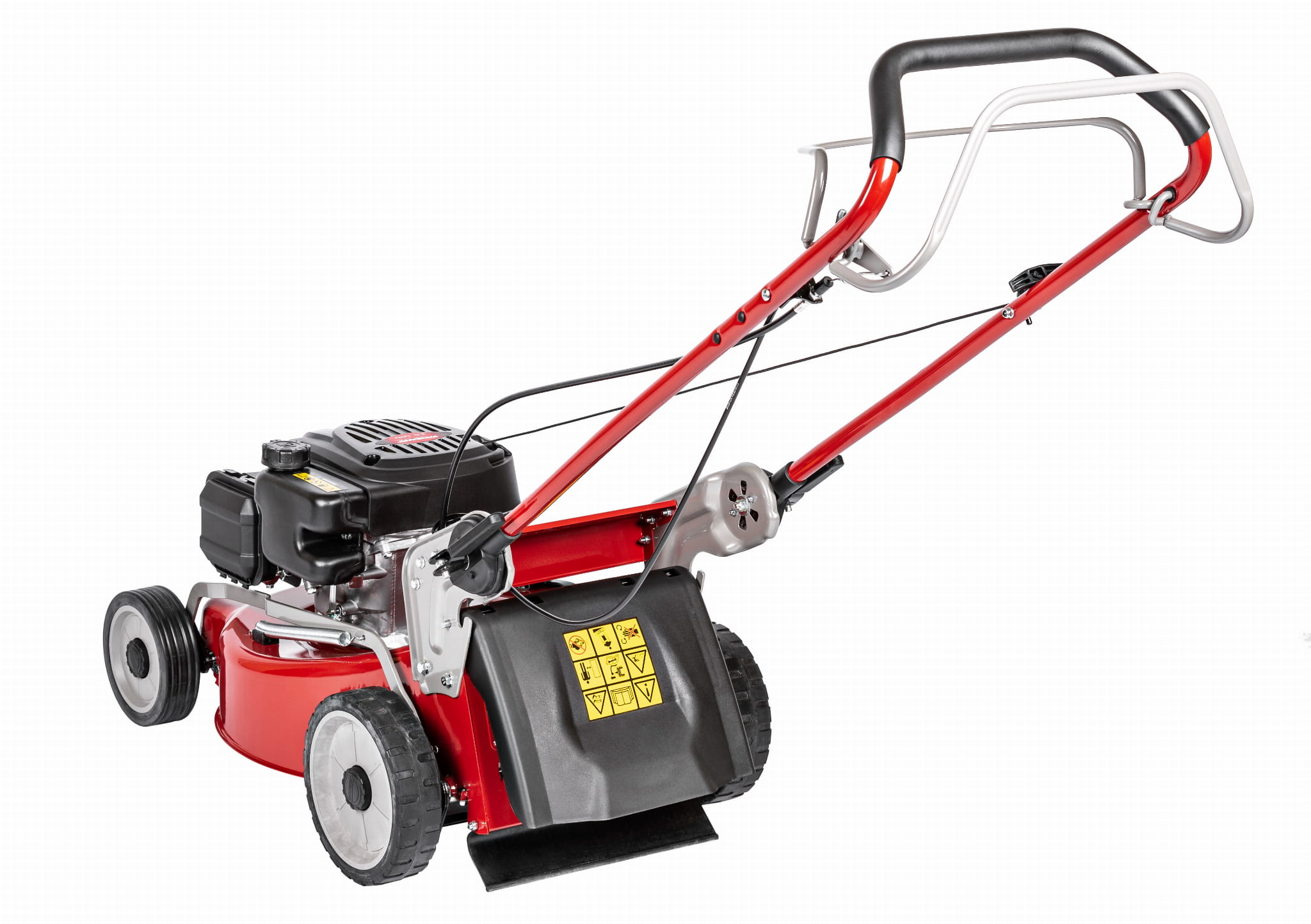 Obudowa kosiarki malowana jest proszkowo antykorozyjną farbą co w znacznym stopniu wydłuża żywotność maszyny. Szerokość robocza kosiarki wynosi 450mm a całkowity ciężar maszyny wynosi 37kg. Kosiarka jest lekka jak na kosiarkę z napędem dzięki czemu jest łatwa w prowadzeniu i nie obciąża niepotrzebnie silnika.